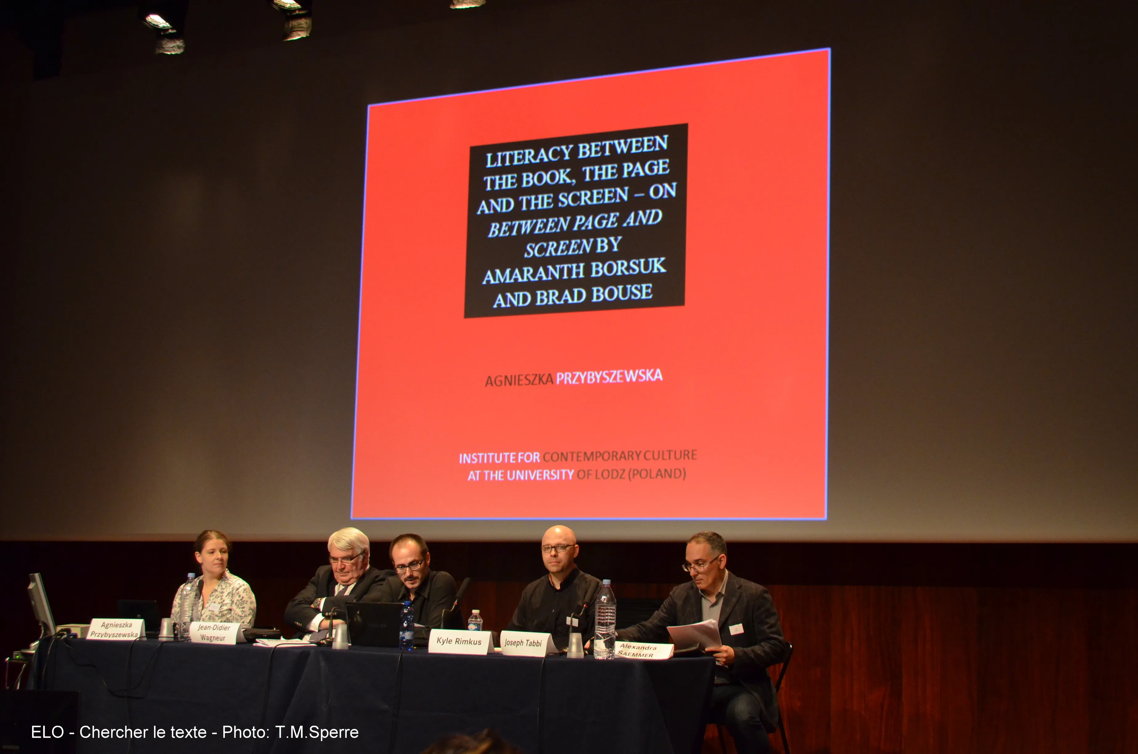 Agnieszka Przybyszewska presenting Literacy between book, page and screen at ELO Chercher le texte 2013
