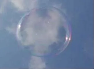 A third image from "El diario del niño burbuja" — A transparent bubble photographed from below, before a blue and white sky.