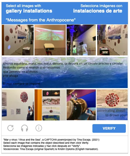Screenshot of CAPTCHA Poem@ — Screenshot of the work, showing the poem centralised in a CAPTCHA interface.