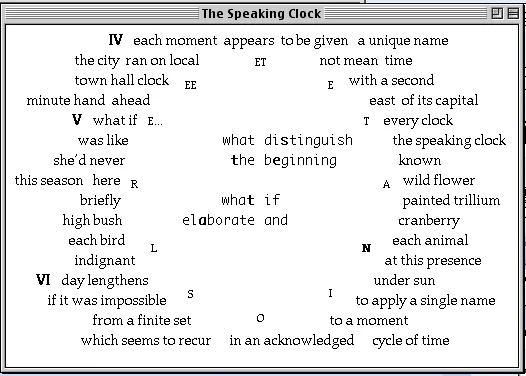 Speaking Clock, 1995 — Speaking Clock, John Cayley, 1995