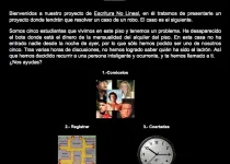 Un relato de amor desamor — Black bacground, white text. Three images, a collage of faces, a clock and a town map.