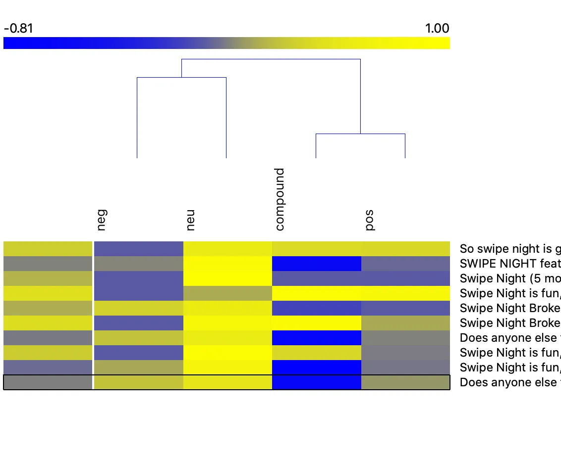 Figure 3: Sentiment Analysis — Heatmap of the sentiment analysis for this data set.
