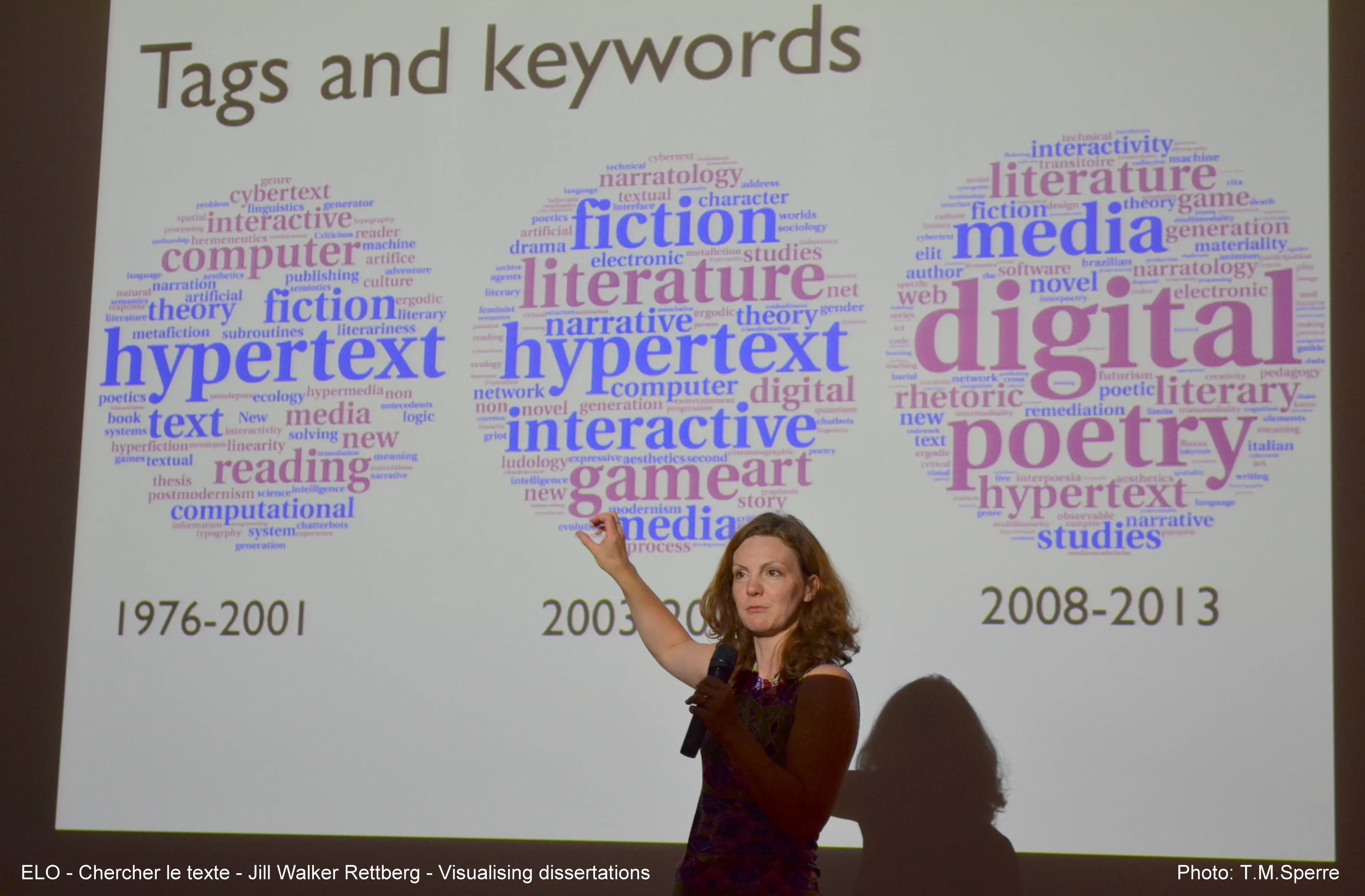 Jill Walker Rettberg presenting A Network Analysis of Dissertations About Electronic Literature at ELO Chercher le texte 2013