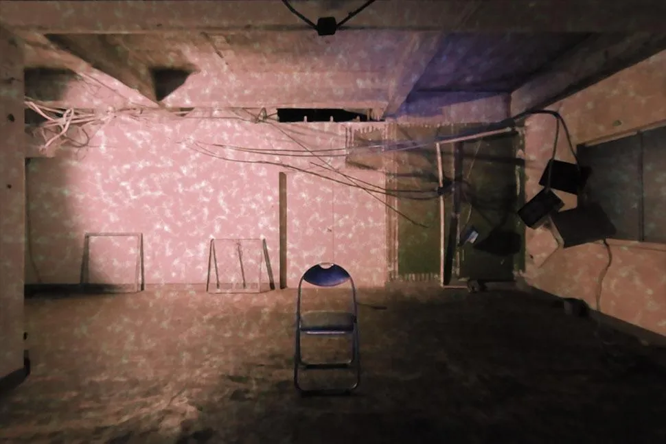 screenshot of game, showing an empty room with noise projected on its walls